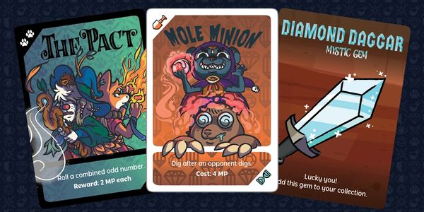 A revamp of our very first game, Bark Magic: Ultimutt Edition is a tabletop competition where two to eight players battle to unearth mystic gems and be crowned Ultimutt Sorcerer. Players can only reach this goal by outwitting their opponents, winning heated duels, and gaining the enchanting power needed to dig deep into the ancient ruins.